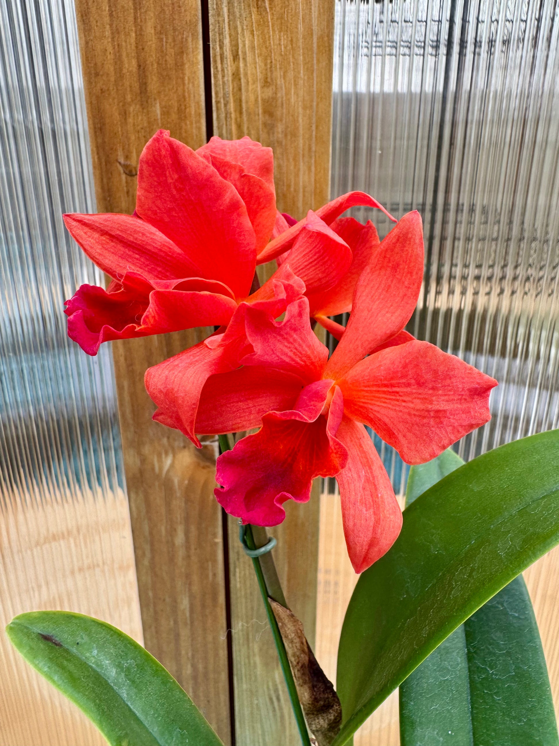 This a fantastic compact hybrid from Beall made in the 80s. Lc. Fire Dance is a compact Cattleya displaying clusters of medium to large orange red blooms. With ample light this hybrid has the ability to bloom twice a year. 4 inch pot.