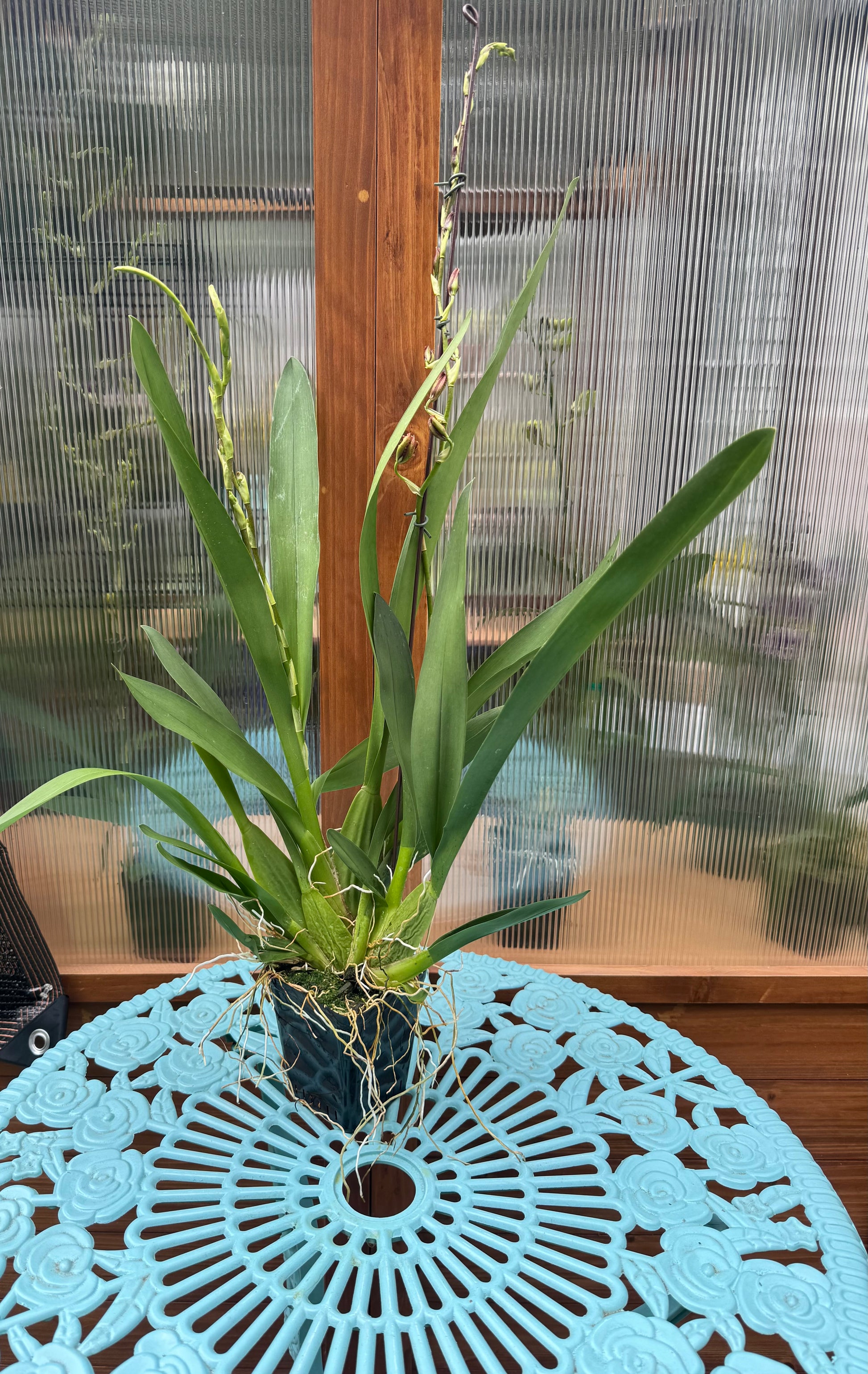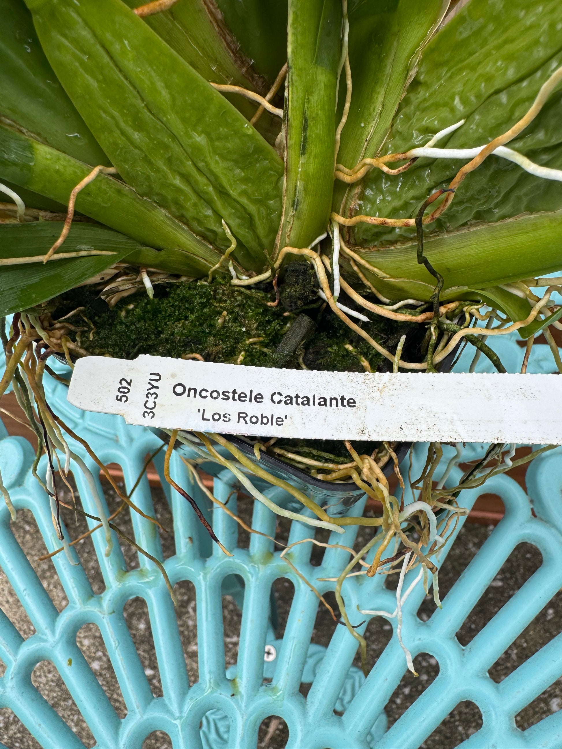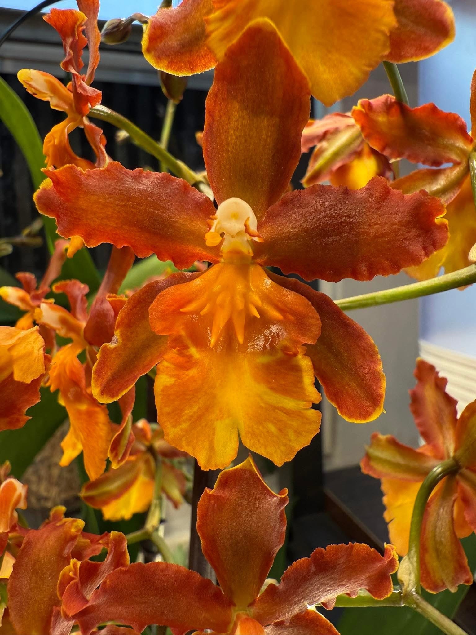 This is a striking Oncidium type. Carrying sprays of deep red-orange long lasting blooms. Capable of blooming twice a year. 4 inch pot.